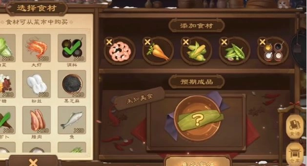 3、当你选中食材之后,点击下方的【准备烹饪】按钮。