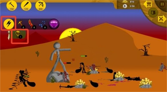 5、购买成功后,可点击战场上左侧闪电形状的按钮,然后选择下方的黄色骷髅。