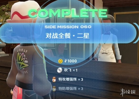 玩家首先要传送至阔星公司附近的贰流餐馆,和那里的NPC对话就能触发支线任务“二星对战全餐”,完成这个挑战就能享受免单福利。选择参与对战后,只要连续战胜5名对手就能完成任务。任务完成后,再次和NPC对话就能领取奖励,奖励包括吹飞的招式学习器,以及特攻增强剂、特防增强剂和金币。