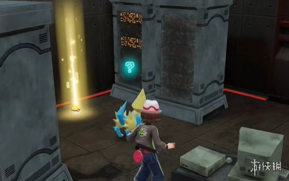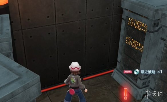 4、沿着道路往里面走,在最里面的房间里向左绕过障碍物,就能看到金色的宝可梦球,捡起来就能获得恶之波动的招式学习器。