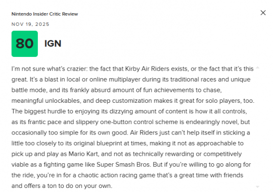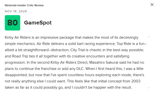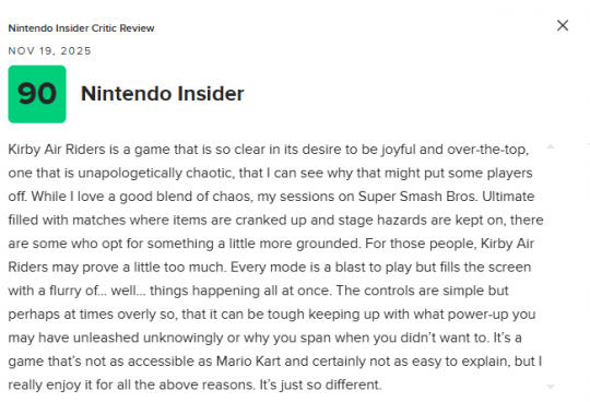 Nintendo Insider 给出了90分的评价。