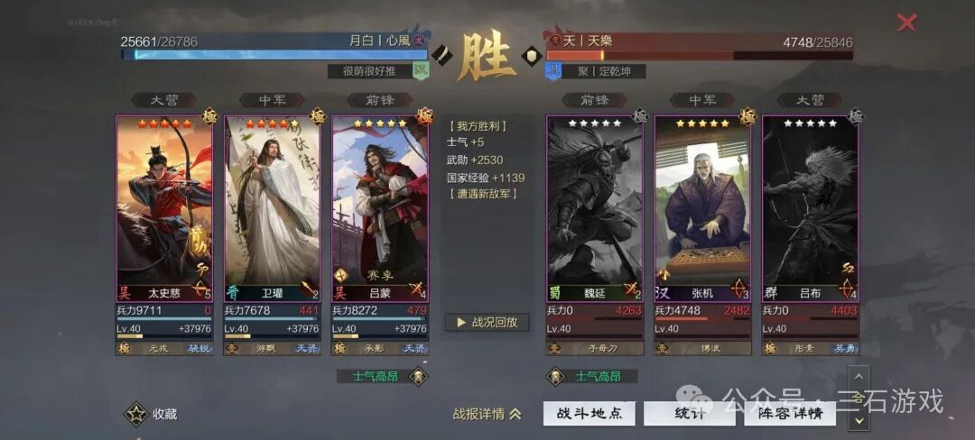在《率土之滨》里,太史慈始终是个处境有些尴尬的武将。他虽具备不俗的输出爆发力,可面板属性的短板与输出稳定性的欠缺,让他一直备受争议。毕竟其自带战法“方阵突击”仅30%的发动率,稳定性确实难以让人满意。 相比之下,SP太史慈的输出稳定性要高出不少。他的自带战法“方阵掩杀”基础发动率40%看似不算突出,但搭配奔袭宝物与士气系统后,发动率通常能达到50%左右。至于面板属性的问题,若太史慈能满红,反而不会造成太大影响。 除此之外,超远的攻击距离是太史慈最核心的优势——只要运气够好能直接“爆头”敌方关键武将,这场战斗无论结果如何都算得上划算。