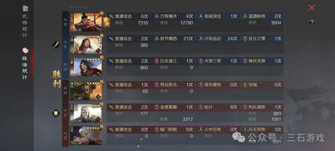 太史慈的队伍战法配置相对简单,因为它直接沿用了杜预法刀体系,只需对太史慈的战法进行调整就行。对太史慈而言,先驱突击与乘胜追击是最优的战法搭配——先驱突击能提供稳定的连击效果,乘胜追击则是最强的追击战法,二者联动可以让队伍展现出不俗的爆发力。