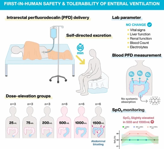 这项研究以早期动物实验为基础,那些实验显示,若经由直肠为哺乳动物输送氧气,它们就能在缺氧环境里存活。虽说该方法目前还处在试验阶段,不过科学家表示,在将来的某一天,针对肺部损伤严重、没办法自主正常工作的患者,这种方式或许能成为一种紧急供氧的办法。