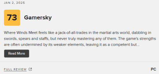 《燕云十六声》作为网易旗下的武侠开放世界游戏,其国际服计划于11月15日正式上线,届时将登陆Steam、Epic以及PS5平台。现阶段,该游戏在M站的媒体评分已正式公布。