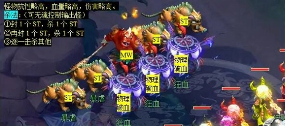 4、抵达地狱迷宫四层后,按顺序点击【机关】对应的坐标(102.50、30.61、25.38) ,启动“灵气灌注”小游戏。
