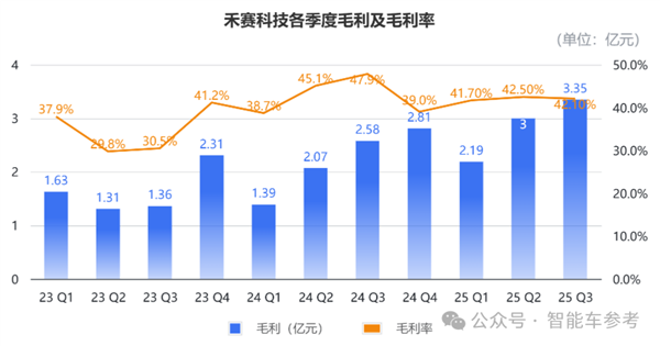 禾赛今年前三季度实现毛利8.54亿元,综合毛利率达42.1%;其中第三季度毛利为3.35亿元,该季度毛利率同样是42.1%,整体毛利率水平在今年保持基本稳定。