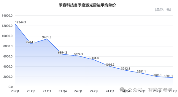 通过交付量与营收数据进行大致核算,本季度禾赛激光雷达的单价再次下探至2000元以内,具体约为1801元,较去年同期下降55.15%,与上一季度相比也降低了10.18%,其价格甚至可能比当下购买一台红米手机还要低廉。