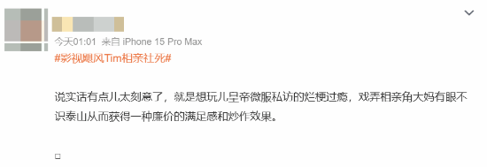网友表示,相亲角体现了普通人对生活的向往与焦虑,不该成为大博主为获取流量而设置的“社会实验背景板”。这类带着优越感的表演,既不真诚,又透露出傲慢的态度。