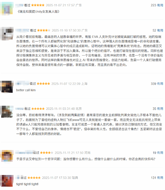 《绝命毒师》与《风骚律师》的缔造者文斯·吉里根(Vince Gilligan),联合蕾亚·塞洪(即Kim的饰演者)推出了科幻新剧《同乐者》,这部作品当前在豆瓣平台的评分为8.5分。