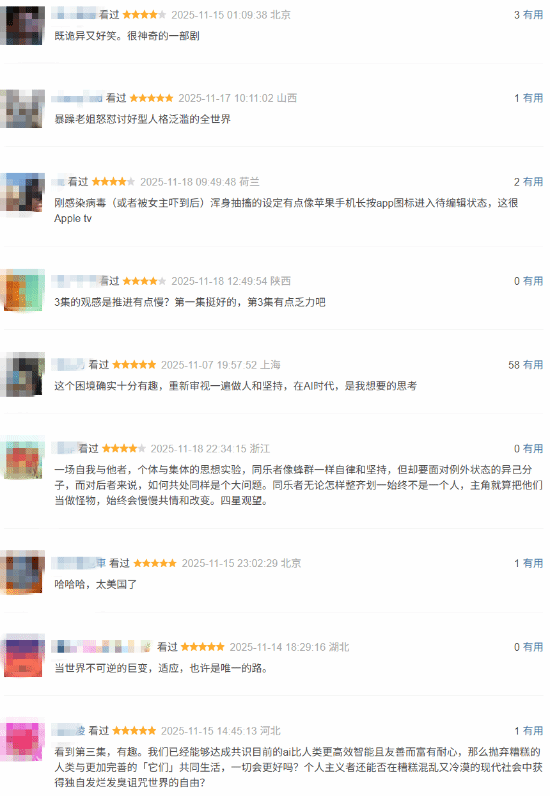 给出好评的观众们觉得剧情既诡异又好笑,题材很新颖,“同乐者”这一概念极具想象力。