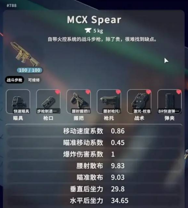PS:截图里还能把腰射枪托I升级成腰射枪托II,升级后腰射散布会比瞄准散布更小。