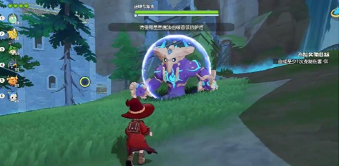 另一项常用技能是原地拍打地面,形成范围性的震荡波。只要不站在BOSS的近处,通常就不会受伤。这个技能没有追踪功能,释放的范围是固定的,所以保持中距离战斗是最好的策略。借助这个空隙,可以用星星魔法集中攻击它的护盾区域,慢慢削弱防御层。