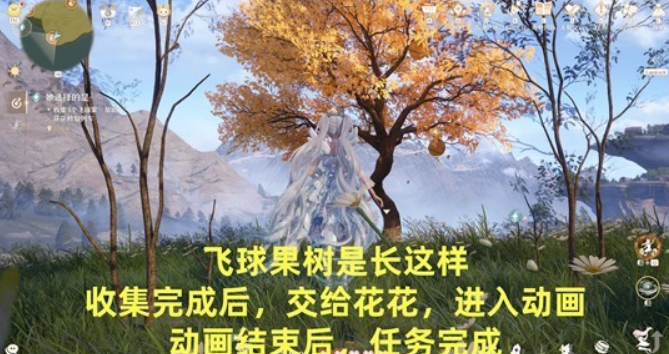收集三个飞球果,交给花花;
