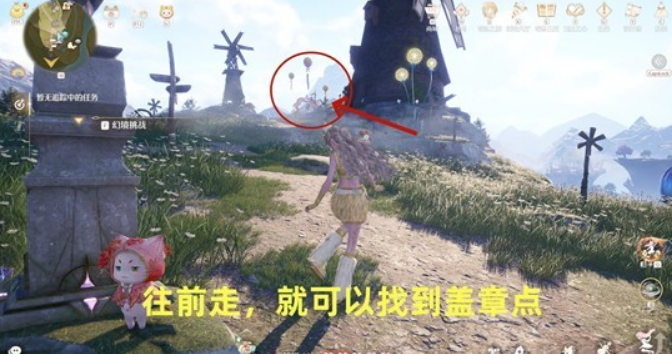 先传送到乘风磨坊顶端的锚点,然后往前走,就能找到盖章的地方啦。