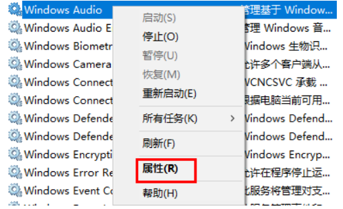 右键单击“Windows Audio”,然后选择“属性”选项。