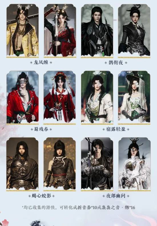 零门槛福利,登录就能免费领取258元时装,十二款任选其一;要是已经集齐了游侠,还能把它转换成10张折音券,或者16个绑定的袅袅之音。
