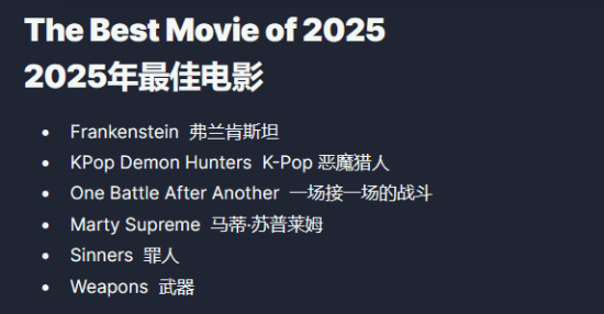 《弗兰肯斯坦》《K-POP:猎魔女团》《一战再战》《至尊马蒂》《罪人》《凶器》