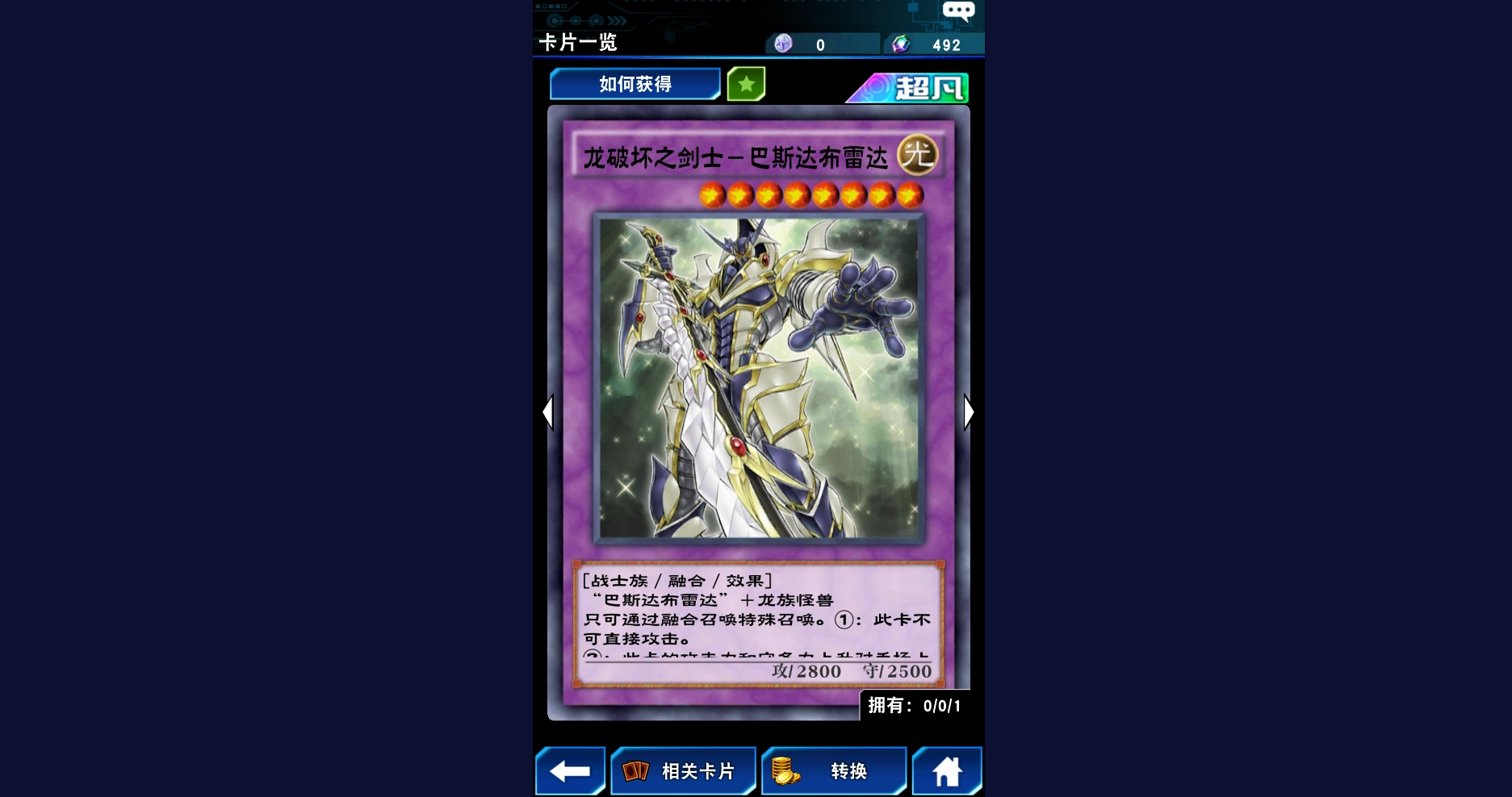 巴斯达布雷达也能作为融合素材,用来融合召唤超魔导剑士与龙破坏剑士,这两张融合怪兽卡同样十分强力。超魔导剑士的效果是针对双方场上及墓地的龙族怪兽提升自身攻击力,还能丢弃一张手牌让对方的魔法卡无效。至于龙破坏剑士,它能将对方的龙族怪兽完全克制,使其一直处于守备表示,同时具备穿透防御的效果。