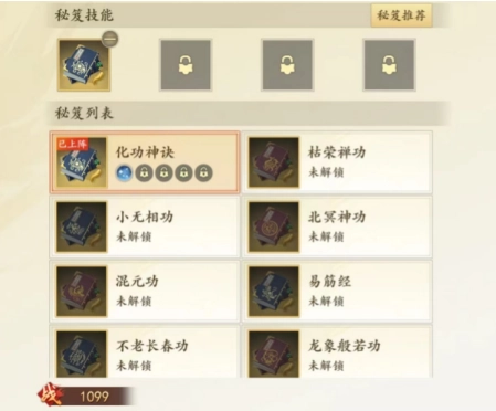 其次,等大家后期等级达到五十多级后,还能解锁秘籍来修炼。这些秘籍里的功法和技能类似,都可以通过修炼提升等级,不过秘籍的修炼分为“参悟”和“进阶”两个环节——参悟更偏向于基础学习,而进阶对功法效果的提升是最显著的,所以大家修炼秘籍时,还是应该把重点放在进阶上。