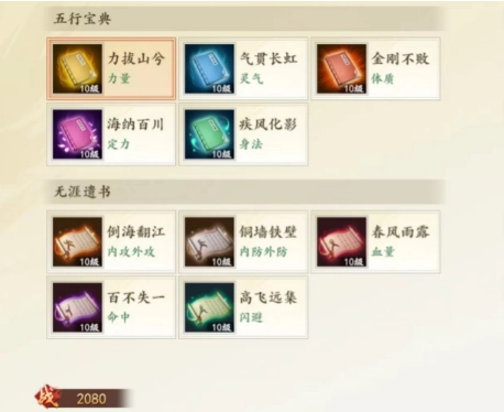 另外,大家也能在上面查看武学相关内容。对于武学功法,大家可以直接点击一键修炼功能。完成一键修炼后,五行宝典里的属性提升会比较显著,因为五行宝典其实涵盖了角色的生命、灵力、力量等方面的内容。要是想修炼内功和外功,大家就得去查看无涯遗书,在这个页面就能看到功法对应的属性了。