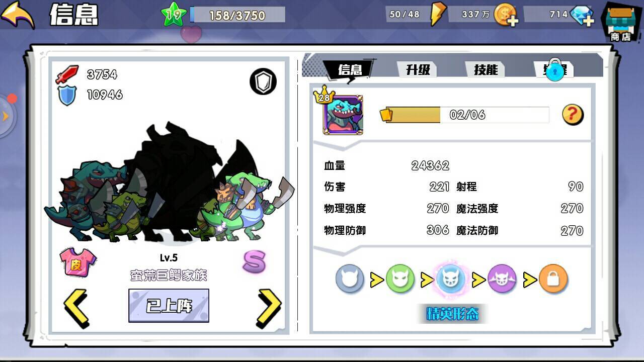 精英形态的蛮荒巨鳄拥有最高的血量与防御,不过伤害相对较低,其物理强度和魔法强度带来的加成伤害大约为650点。这些信息表明,蛮荒巨鳄的定位是团队中承担最多伤害的“肉盾型炮灰”。