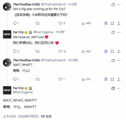 一位网友在社交平台上向官方询问:“《孤岛惊魂》今年会有重大动态吗?(Got a big year coming up for Far Cry?)”