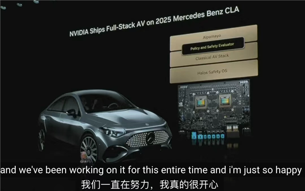 黄仁勋表示,搭载英伟达自动驾驶软件的全新奔驰CLA是全球唯一同时运行这两套自动驾驶系统的汽车。