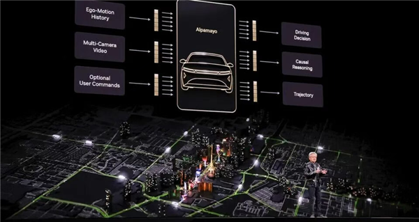 按照黄仁勋的说法,Alpamayo实现了真正的端到端闭环:覆盖从摄像头输入到执行器输出的完整链路。它不仅采用了海量人类驾驶员积累的真实行驶里程数据,还整合了Cosmos生成的大量合成里程数据。在此基础上,更有数十万个经过超高精度标注的样本,专门用于训练车辆掌握驾驶技能。
