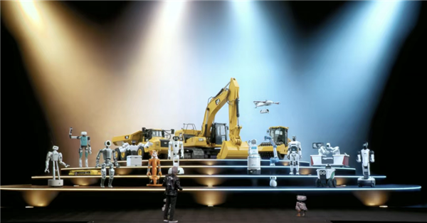 当然,以上这些还远远不是黄仁勋演讲的所有内容,比如机器人的“全家桶”秀,舞台上站满了不同形态、不同用途的机器人,从人形机器人、双足与轮式服务机器人,甚至还有CAT旗下的工程机械车。