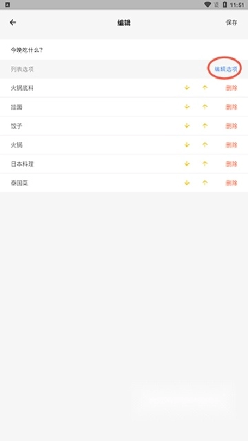 打开抽签创建页面后,我设定了“今晚的餐食选择”作为主题,要是想补充其他选项,在编辑功能区域就能操作。