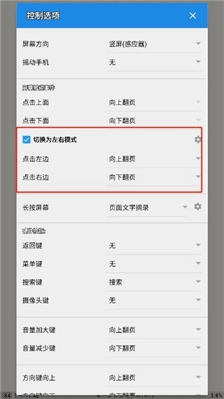在屏幕触碰时间勾选左右模式即可设定为左右翻页。