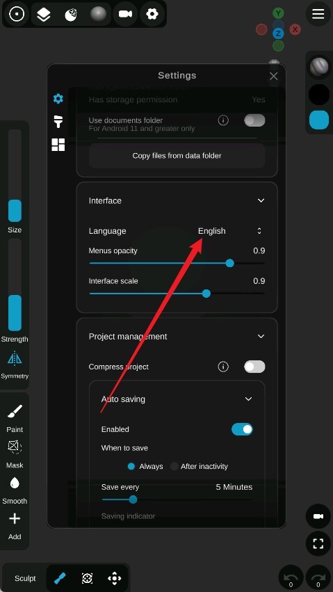 1、启动Sculpt+建模软件,进入主界面后,点击顶部呈齿轮形状的“设置”图标。