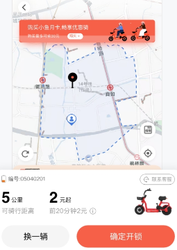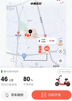 找到车辆后,可通过扫码功能扫描车上的二维码解锁,也能输入车辆编码来解锁。