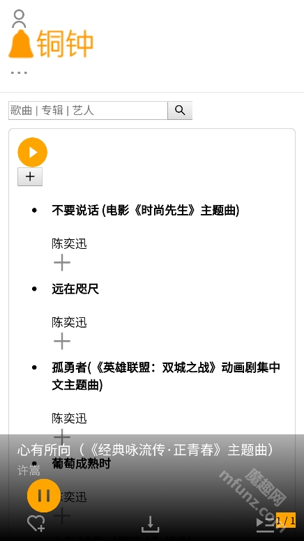 铜钟音乐是一款精彩绝伦的迷你音乐播放掌上听歌神器。铜钟音乐安卓版魅力十足,尽管体积小巧,但所需功能一应俱全。无论你想听什么音乐,都能在铜钟音乐中找到满意的。这款软件拥有海量高品质无损音乐资源,支持智能推荐、离线等功能,让用户随时随地畅享音乐!