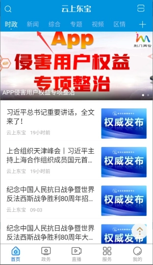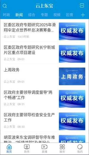 2、在首页导航栏找到东宝新闻栏目并点击进入,即可浏览本地最新的时事动态与政策解读内容。