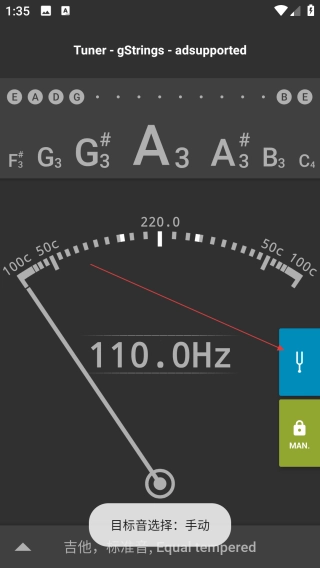 1、打开gstrings调音器,点击【箭头所指方向】。
