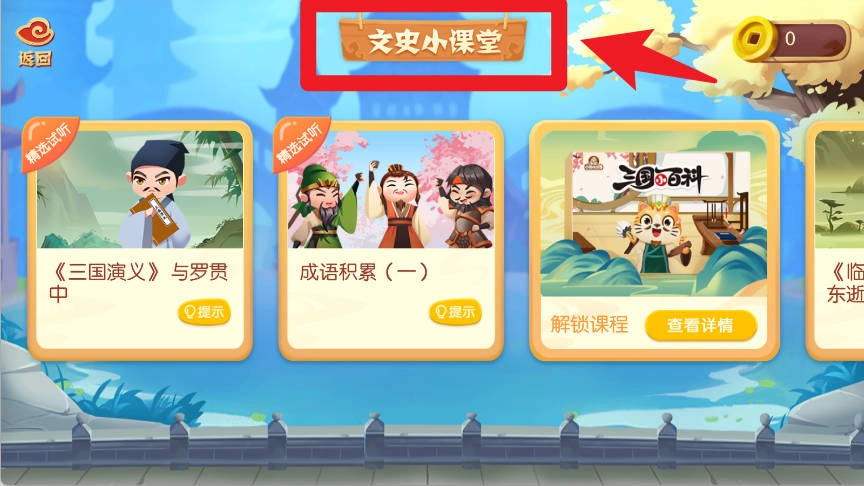 5、在文史小课堂板块,用户能够解锁更多历史课程,通过融合成语积累与经典故事,逐步拓宽历史知识储备。