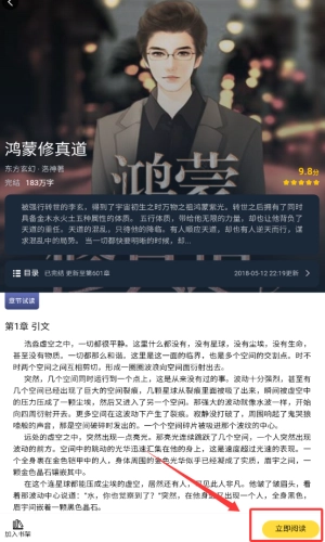 4、在详情页,点击被框的立即阅读按钮。