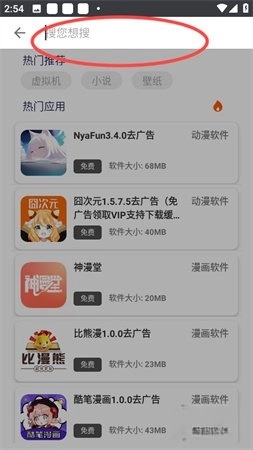 1、接着打开软件,点击顶部的搜索框,就能迅速查找并定位到自己需要的软件。