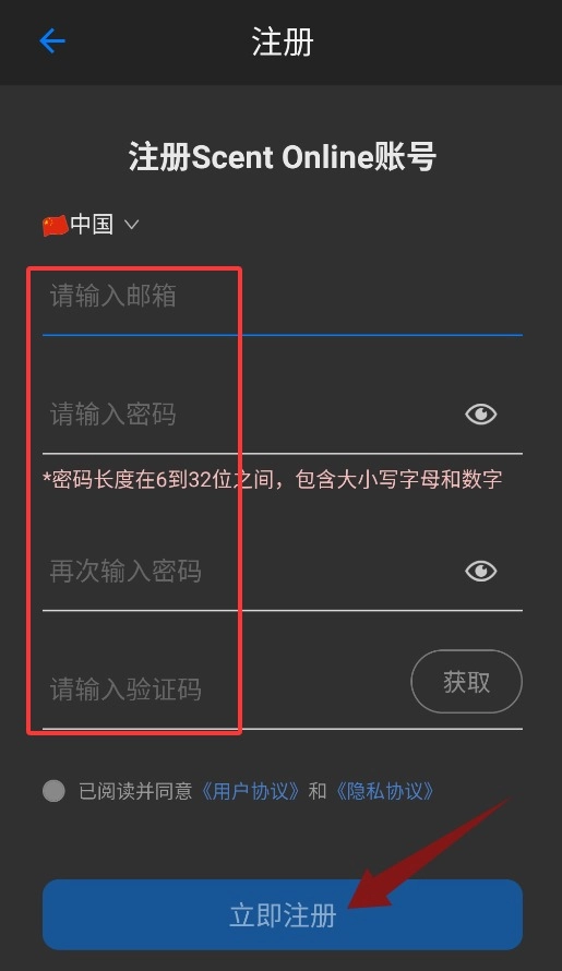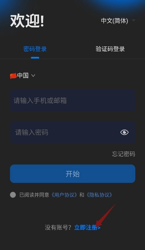 2、在登录界面下方点击立即注册按钮,即可跳转至账号创建页。