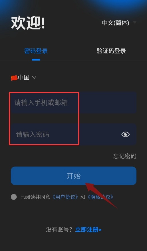 4、回到登录界面,输入之前注册过的邮箱或者手机号,再输入对应的密码就能完成登录操作。