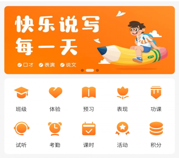 具有预约报名、续班消课、网课积分、预习跟读、备课点评、发布视频、网上商城等多种功能