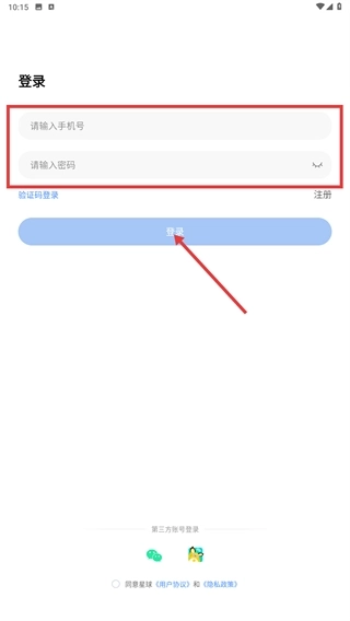 3、切换到密码登录模式,输入手机号和对应的密码,勾选协议后点击【登录】按钮,完成账号验证。