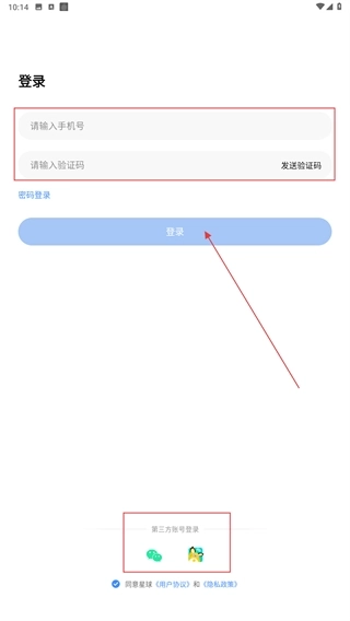 2、登录页支持两种登录方式:一是选择验证码登录,依次输入手机号、获取并填写验证码即可;二是通过第三方账号进行快捷登录。