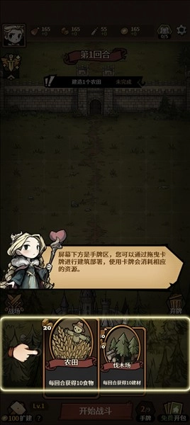 4、界面下方是手牌区,您可以通过拖曳卡牌进行建筑部署,使用卡牌会消耗相应的资源