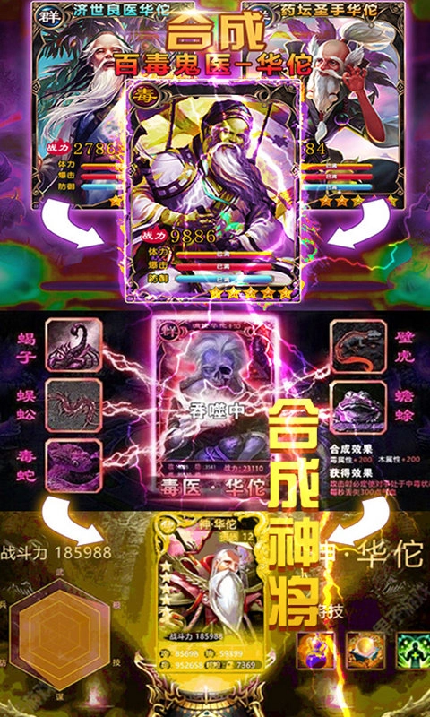 3.创新元素:猛毒三国在经典的三国历史背景下融入了许多创新元素,如独特的毒计系统、丰富的武将养成系统等,让游戏更具吸引力和挑战性。