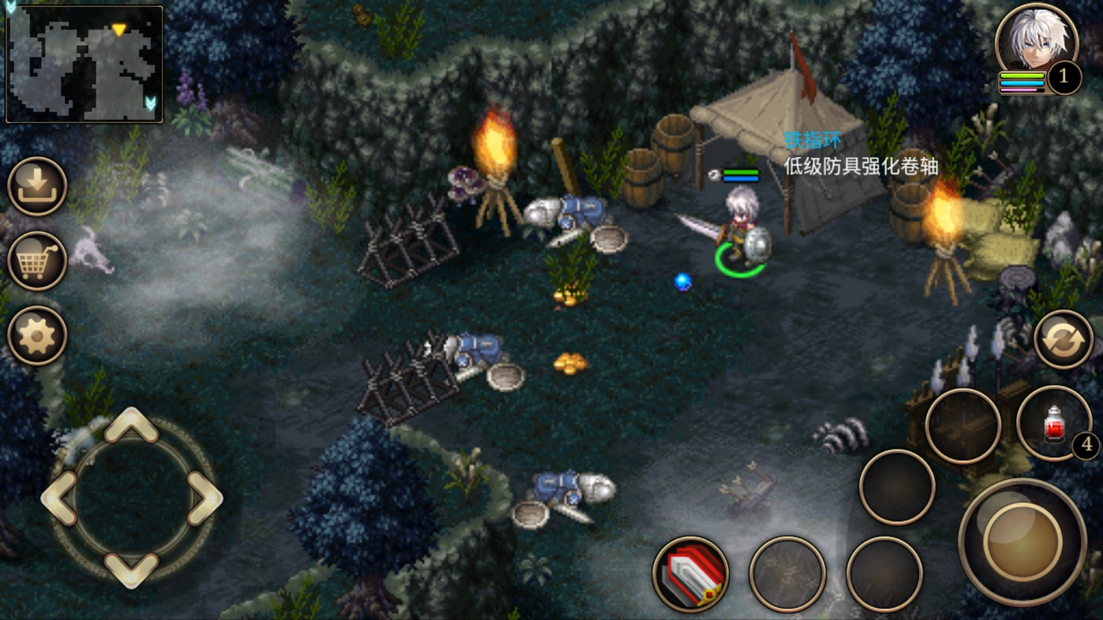 在怪物附近按下行动键,角色便会自动展开战斗,期间还能点击技能图标来释放技能。