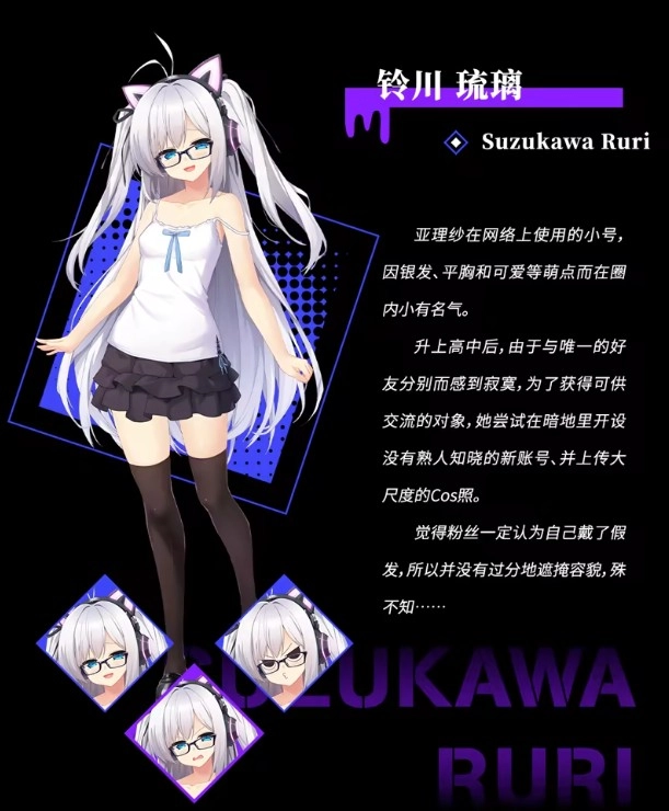 亚理纱在网络上有个小号,因为银发造型、平胸特质和可爱的萌点,在圈子里小有名气。升上高中后,她和唯一的好友分开了,心里觉得很寂寞。为了找到能聊天交流的人,她偷偷开了个没熟人知道的新账号,还上传了尺度比较大的Cos照片。她以为粉丝肯定会觉得自己戴了假发,所以没怎么刻意遮掩容貌,却不知道……