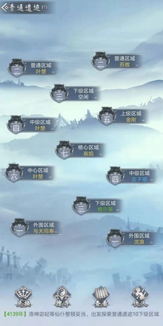 一个服务器设有20个遗迹,包含1个太古遗迹、3个远古遗迹、5个神秘遗迹、11个普通遗迹和1个无人遗迹,各类遗迹的资源量按此顺序递减,太古遗迹因其丰厚资源成为仙友竞相争夺的核心之地。